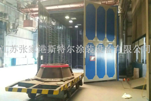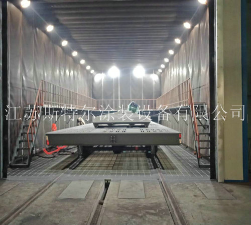 2.3 臺車進入噴砂房內,關閉大門;