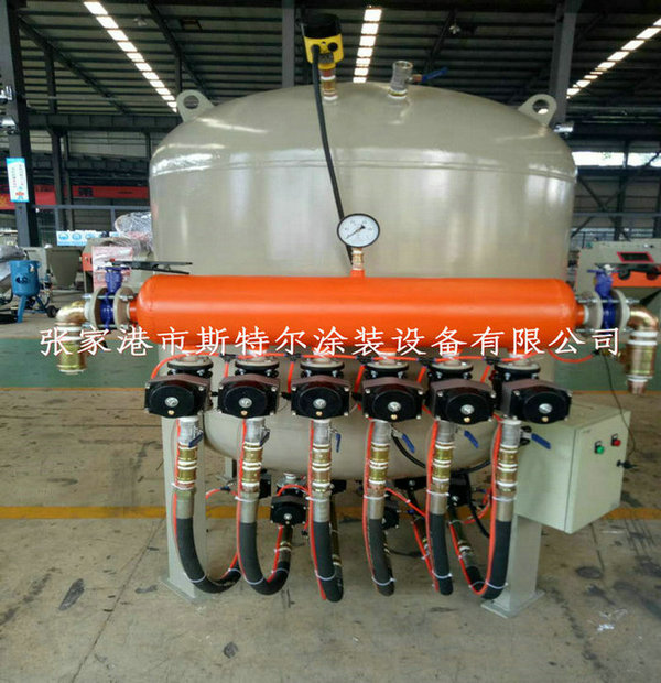我公司研制的各型加壓式噴砂機,吸取了各家之長,在結構和配套上做了較大地改進,同時形成了固定的備件、易損件供應市場,便于掌握,使用和維修都很方便。具有除銹效率高,磨料和能源消耗低,并具有安全可靠、操作方便等特點。